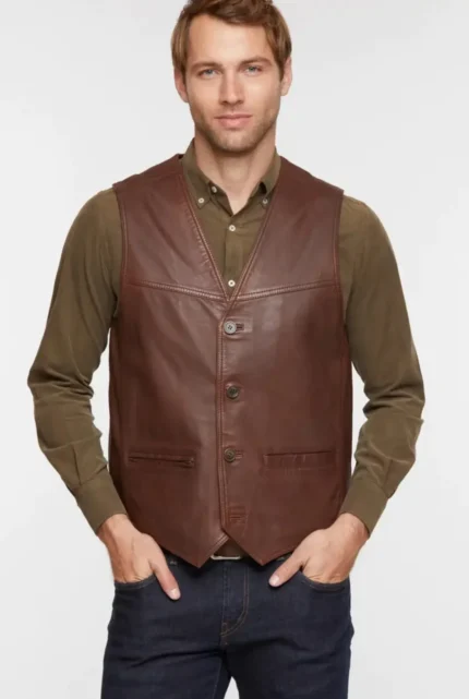 Men`s Brown Leather Vest