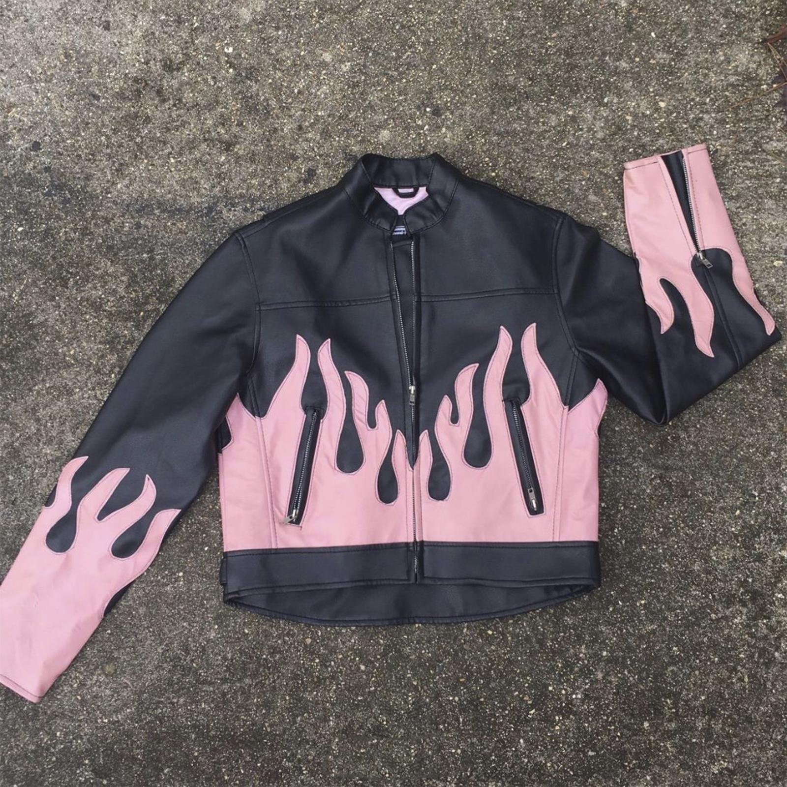 Pink Flame Leather Jacket for Women